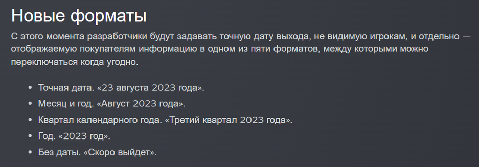 Изменения в отношении раздела с датой выхода игры в Steam должны автоматически вступить в силу 1 января 2023 года.