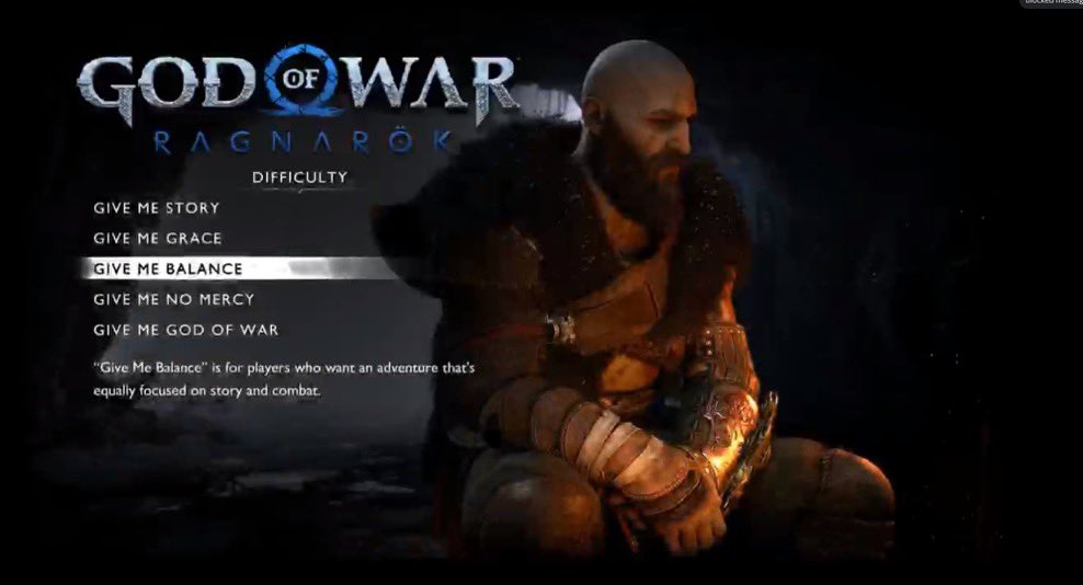 Выбор уровня сложности и настройки в God of War Ragnarok.