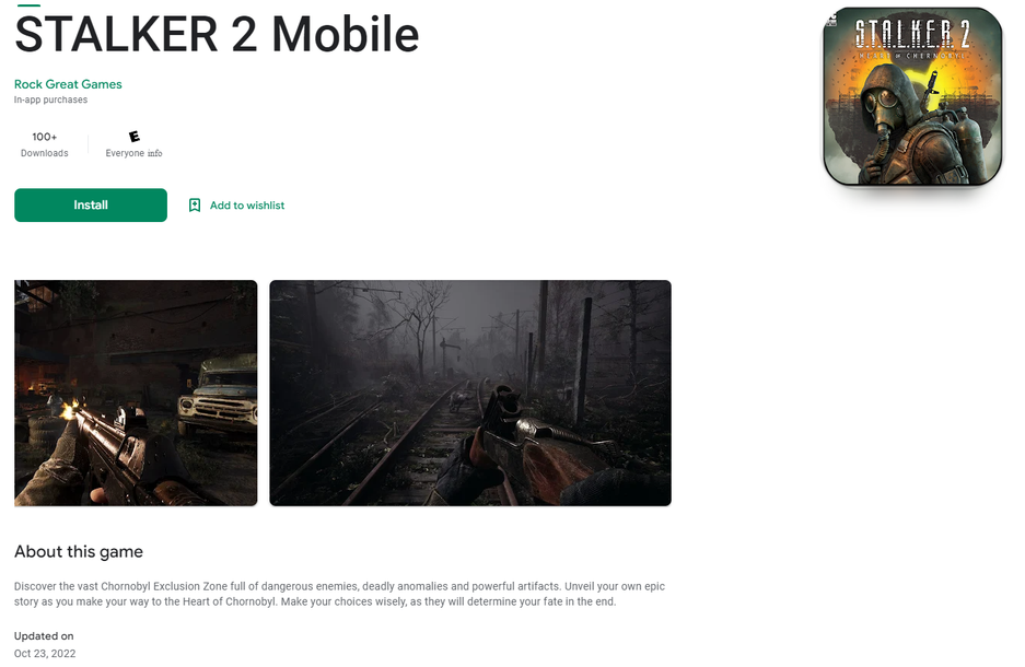 Rock Great Games представила STALKER 2 Mobile. Игру можно не отыскать при прямом поиске в Google Play, но она доступна по ссылке (не всегда открывается из России).