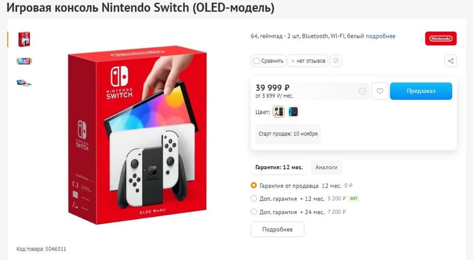 Помимо того, DNS объявил о том, что покупатели сейчас могут оформить заказ на Nintendo Switch OLED. Портативная консоль обойдется в 40 тысяч рублей и поступит в продажу 10 ноября.