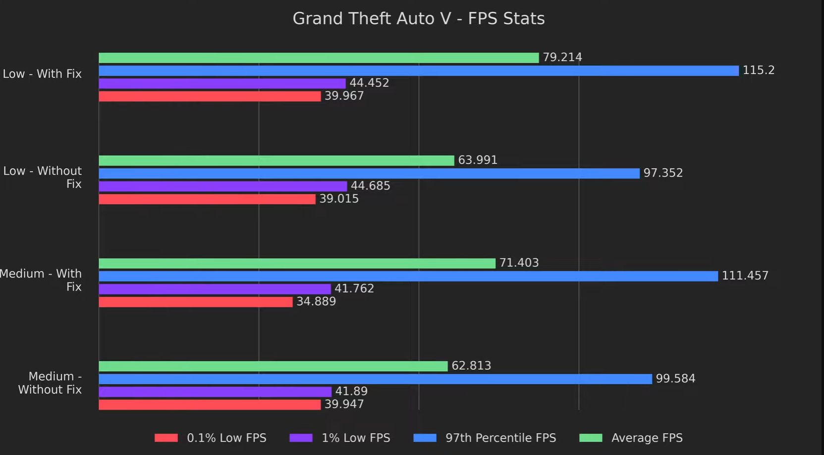 GTA 5. На средних настройках графики в среднем было 62 FPS, а теперь 71. На низких разница составляет примерно 15-16 кадров.