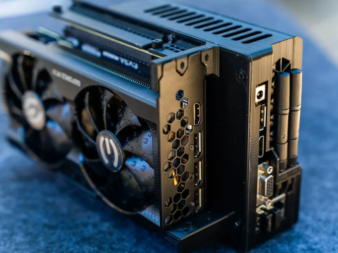 Если потребуется дополнительная мощность, то можно подключить внешнюю видеокарту. Конструкция выглядит вот так.