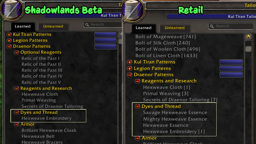 Часть контента WoW Warlords of Draenor стала недоступной в WoW Shadowlands. Представитель Blizzard в 2020 году заявил, что это «побочный эффект разработки Shadowlands».