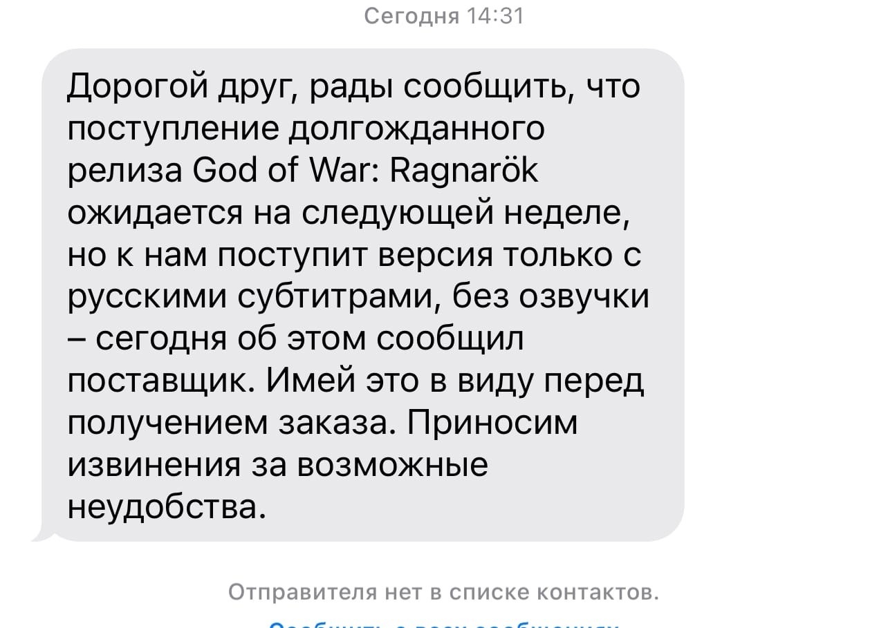 Недовольные клиенты «М.Видео» начали публиковать скриншоты сообщений. Получается, что физическое издание God of War Ragnarok не содержит русскую озвучку.
