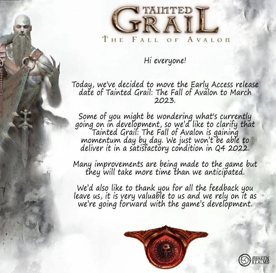 Ролевая игра, создающаяся по шаблонам Skyrim, с названием Tainted Grail: The Fall of Avalon выйдет позже изначально запланированного срока.