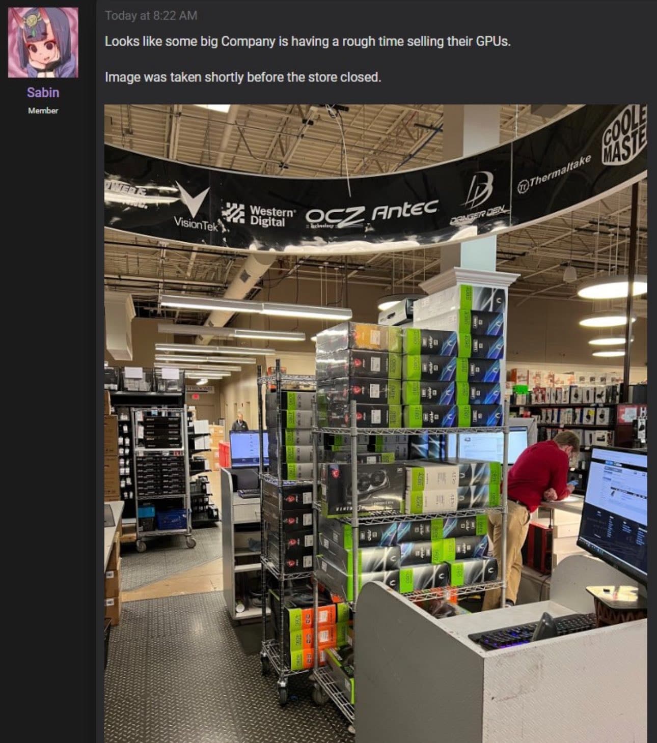 Но, похоже, RTX 4080 не пользуется большой популярностью среди покупателей. Согласно последним сообщениям, Nvidia поставила на рынок всего 30 000 устройств, а в сети появляются фотографии, на которых RTX 4080 присутствует в достаточном количестве на полках магазинов.