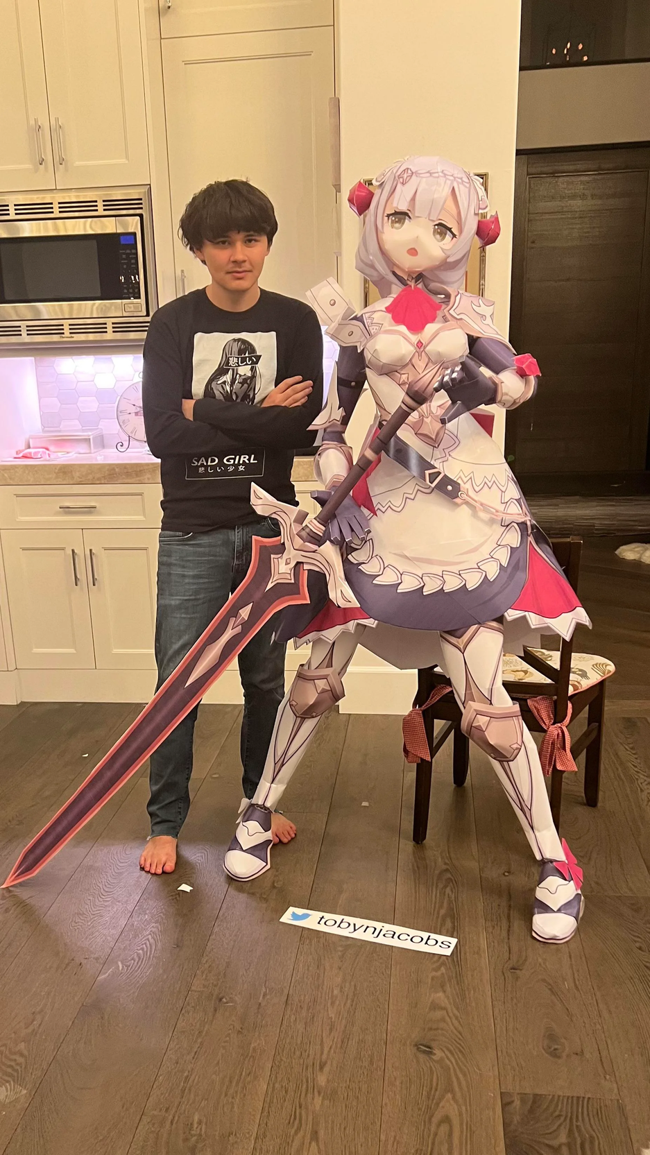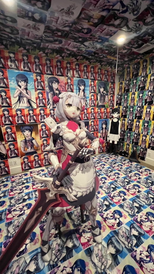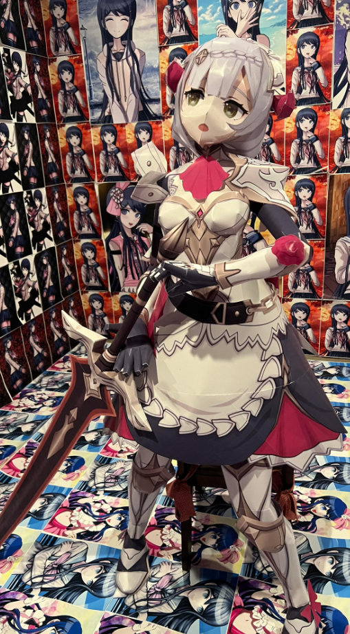 Он устроил бумажной Ноэлль фотосессию. Некоторые кадры заставляют беспокоиться о психическом здоровье героя истории. Одна из комнат обклеена изображениями Саяки из Danganronpa.