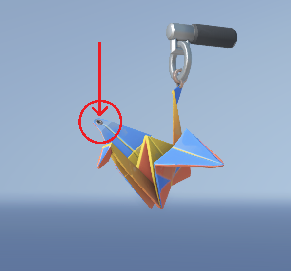 Дело в том, что на модели брелка отчётливо видно специально проделанное отверстие, через которое, по логике, следует продевать цепочку. Однако, по какой-то причине конструкцию закрепили в совсем другом месте.