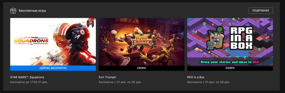 Пока некоторые изучают Star Wars Squadrons, пользователи из России могут ознакомиться с тем, что ранее успели забрать в магазине с пониженной комиссией для разработчиков Epic Games Store
