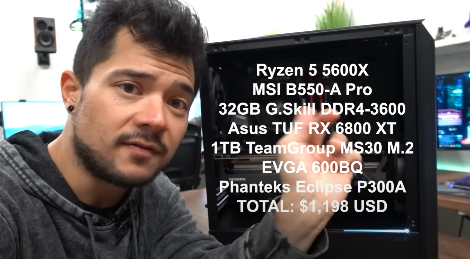 Bitwit представил следующую сборку ПК по цене GeForce RTX 4080, всё это помещается в корпус Phanteks Eclipse P300A. Сборка обошлась даже чуть-чуть дешевле, в 1198 долларов.