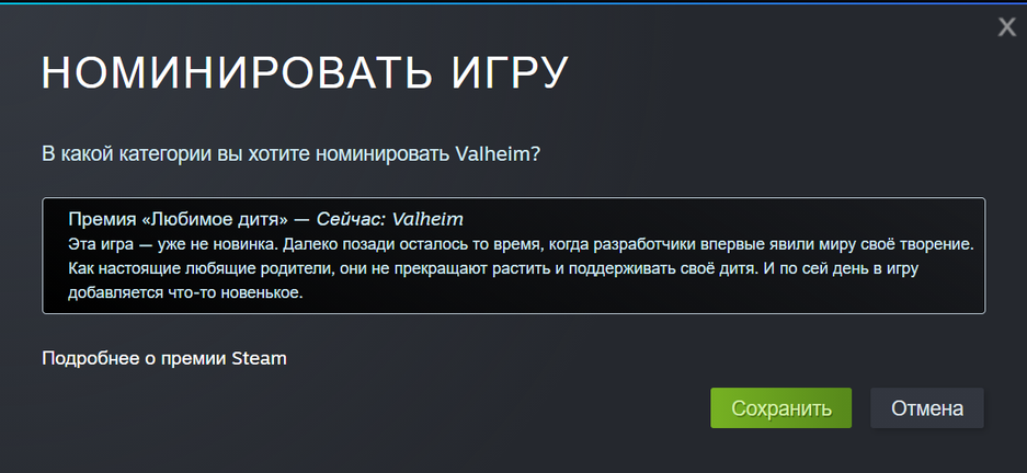 Дело в том, что эта награда предназначена для старых проектов с хорошей поддержкой. Это несколько не соответствует текущему состоянию Valheim. По мнению заметной части игроков, сначала разработчикам Valheim следовало бы доделать игру.