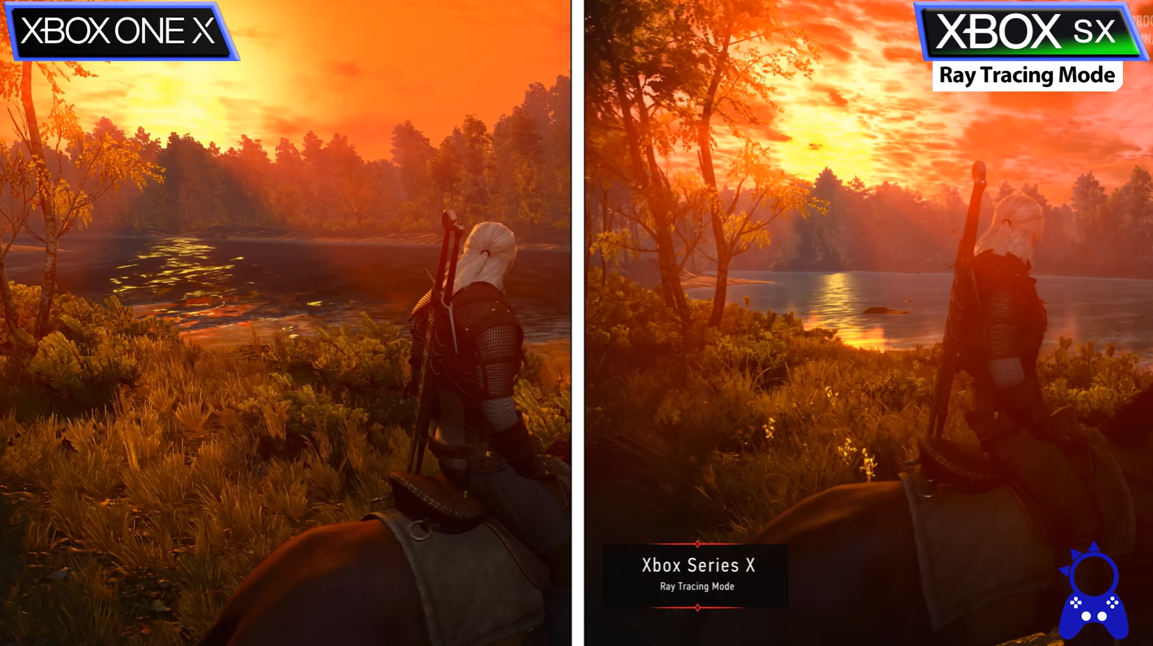 Также он проводит сравнение старой и новой версии «Ведьмака 3» на Xbox One X и Xbox Series X (Performance Mode; Ray Tracing Mode) и консолях PlayStation 4 Pro и PlayStation 5 (Performance Mode).