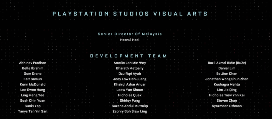 Целая секция в титрах посвящена работникам PlayStation Studios Visual Arts, которые участвовали в создании кинематографических роликов и помогали с другими элементами проекта студии Striking Distance.