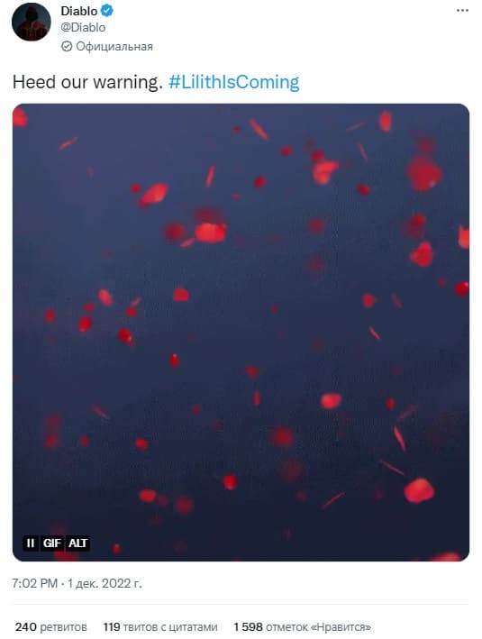 В официальном Twitter серии Diablo появилась серия небольших сообщений и gif-файл с падающими лепестками роз. Вероятно, в ближайшее время появится загадочный анонс по новой части культовой франшизы: