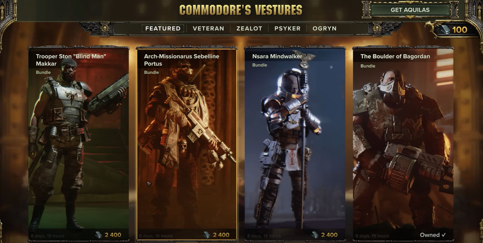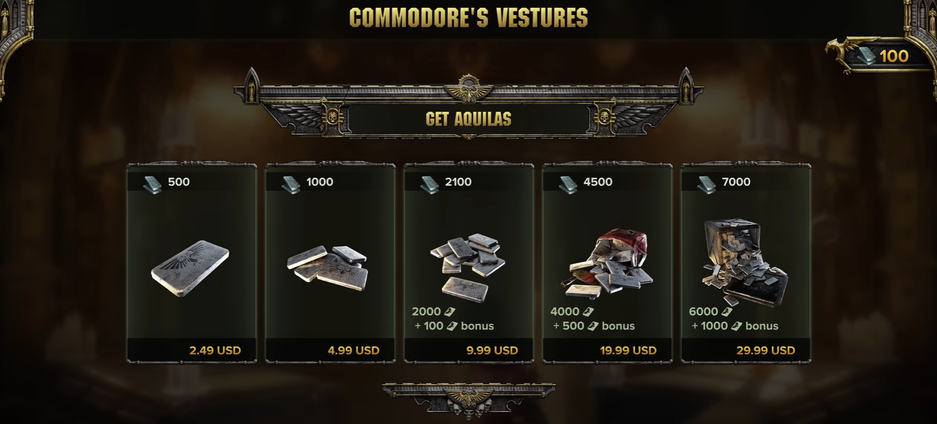 В Warhammer 40000 Darktide нет прямых покупок, сначала надо приобрести виртуальную валюту. Однако, нельзя купить произвольное количество валюты. Ценники сделаны так, чтобы элегантно подталкивать заплатить побольше.