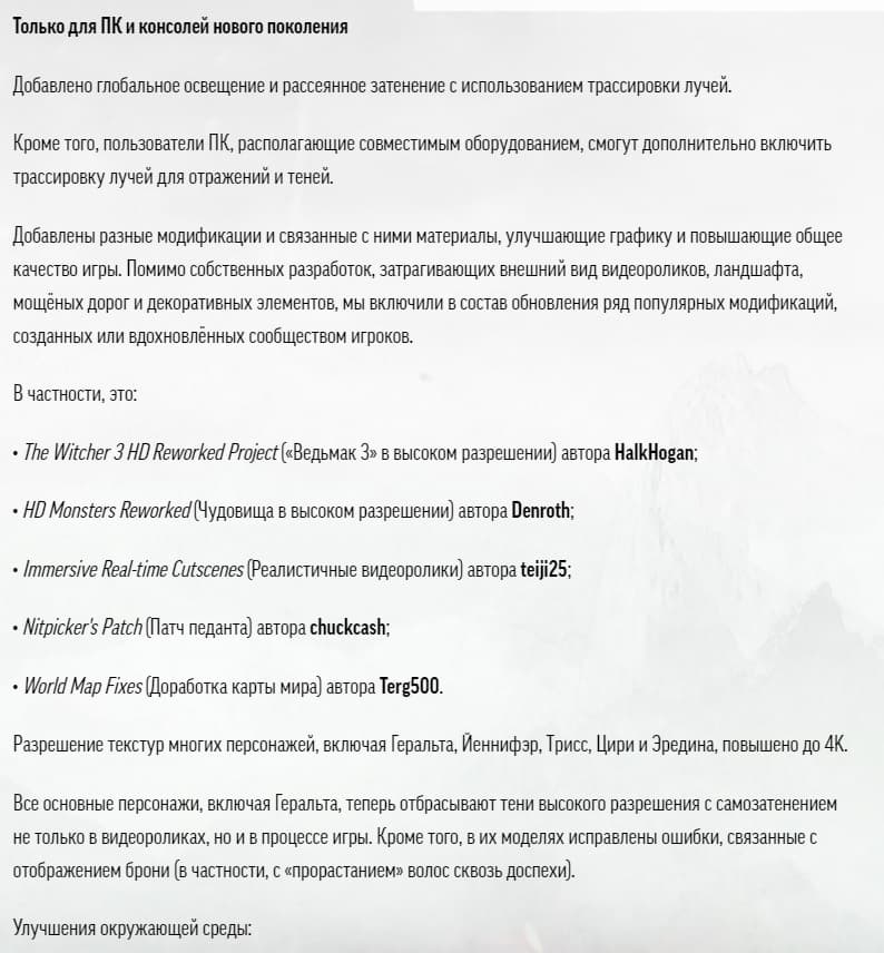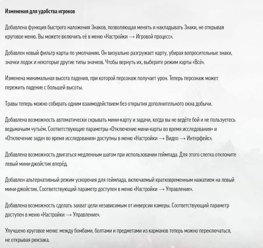 The Witcher 3 - список новых возможностей и изменений:
