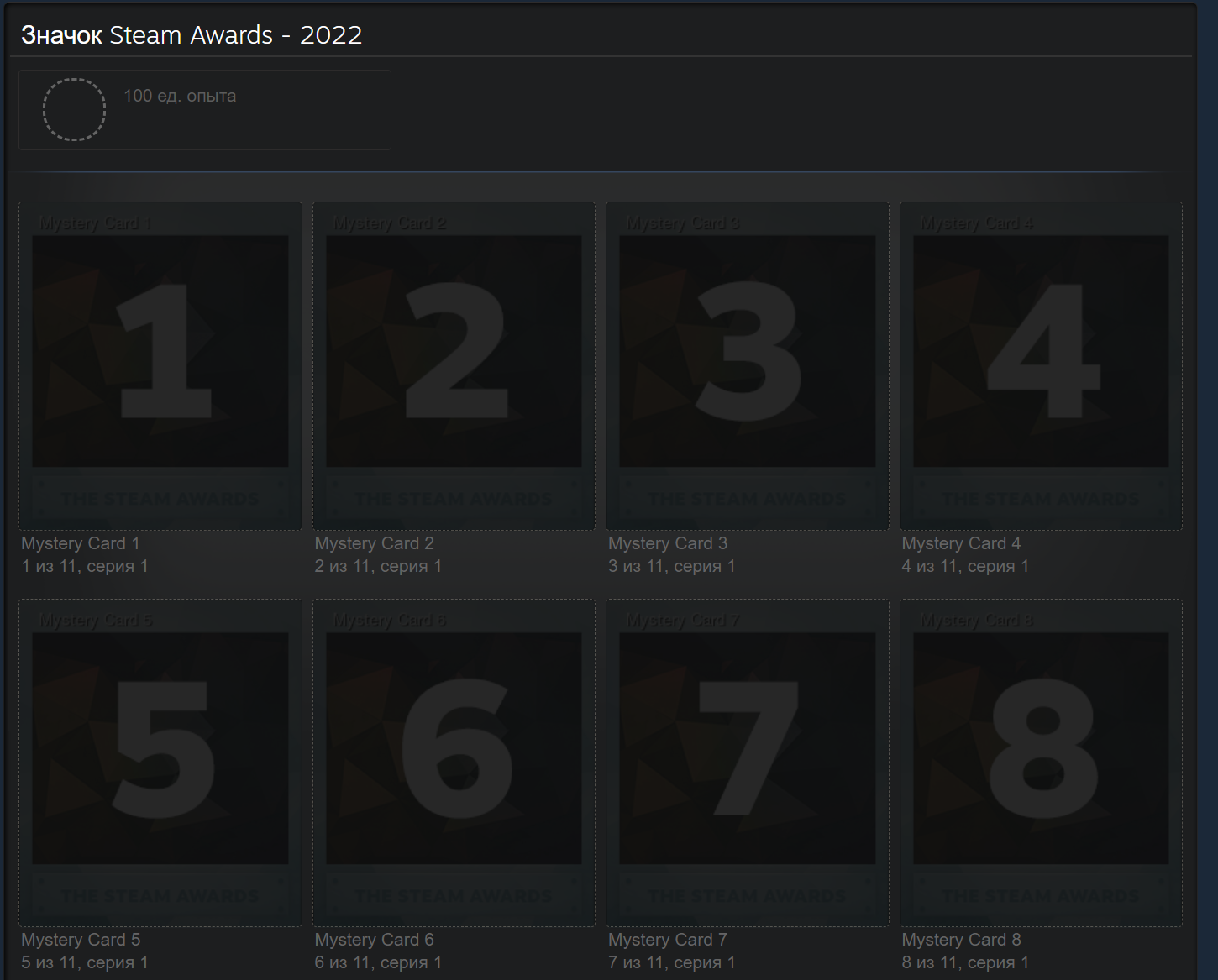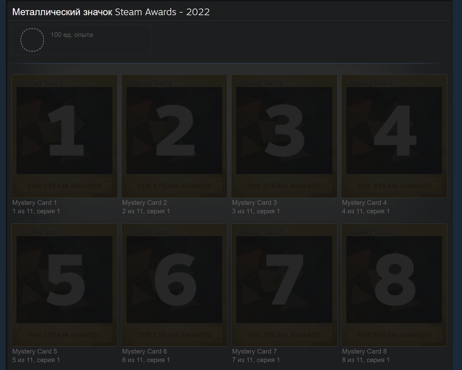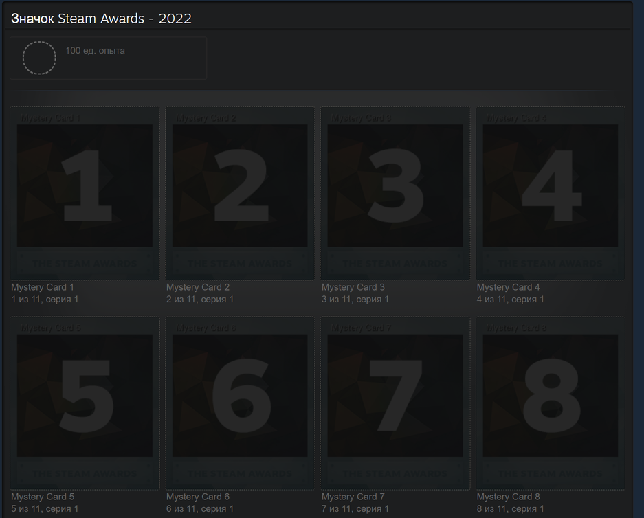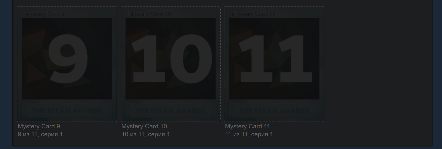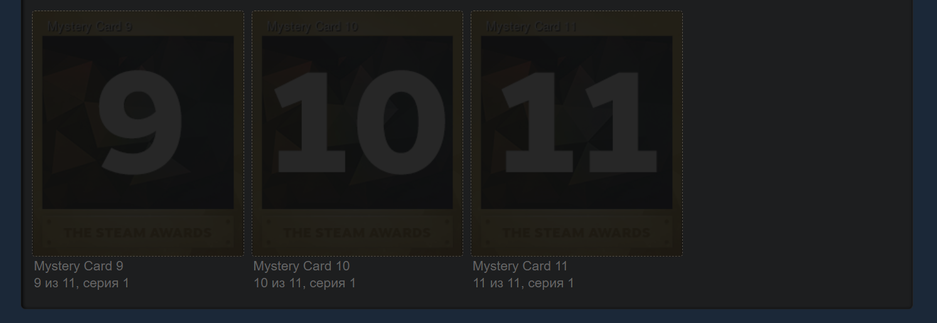 С началом Зимней распродажи Steam 2022 карточки должны раскрыть, а пока они «засекречены». Всего будет 11 коллекционных карточек Steam.