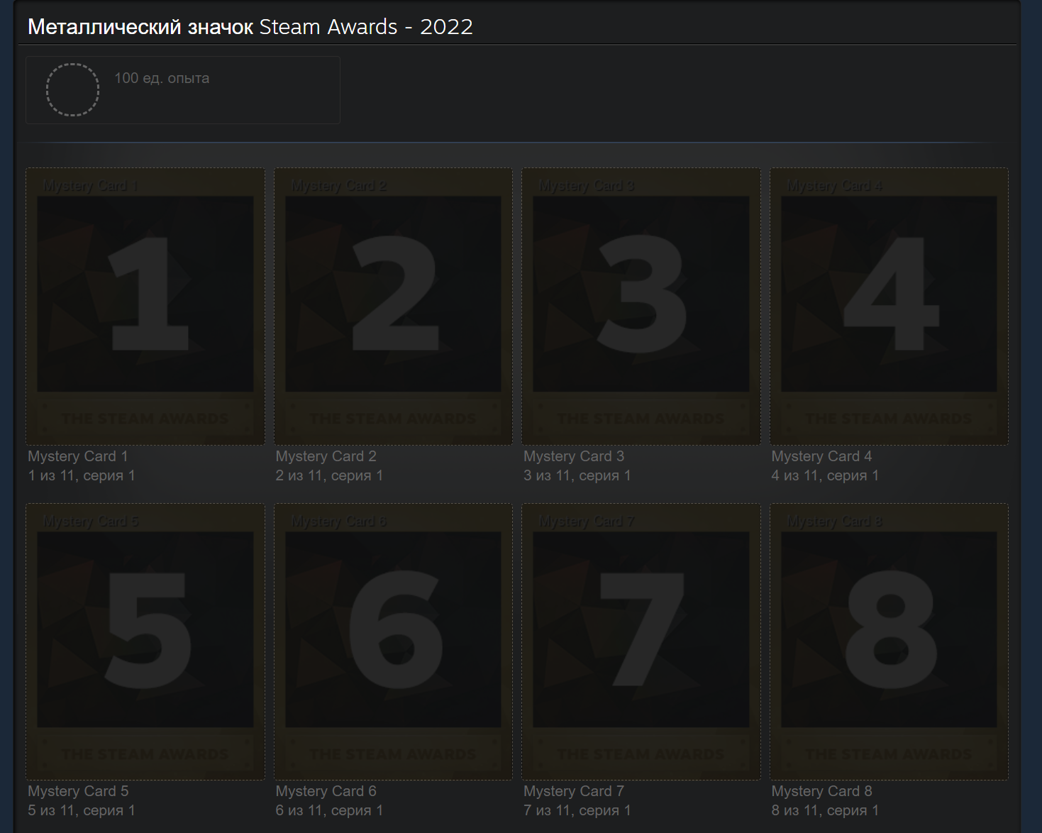 Превью обычных и металлических карточек Steam Awards 2022.