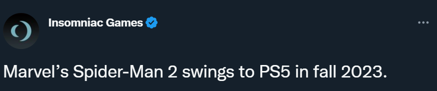 Insomniac Games в блоге PlayStation объявила о том, что Marvel's Spider-Man 2 для консолей PlayStation 5 планируют выпустить осенью следующего года.
