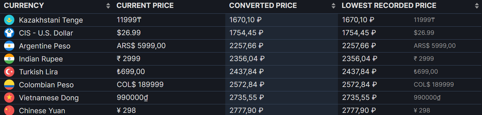 Оказалось, что при пересчёте на рубли Hogwarts Legacy в Турции стоит дороже, чем в Казахстане (2437.84 рублей против 1670.10).