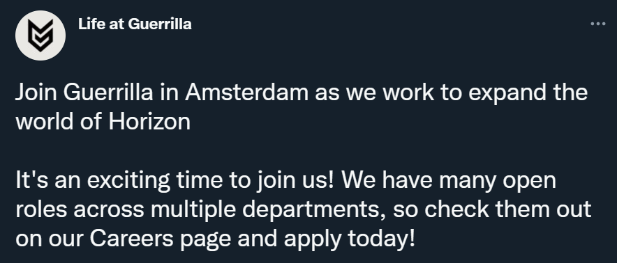 Студия Guerrilla Games подтвердила давние слухи, опубликовав в социальной сети объявление о поиске сотрудников. Действительно, авторы Horizon Forbidden West и Horizon Zero Dawn делают мультиплеерную игру во вселенной Horizon.