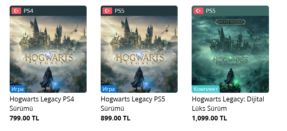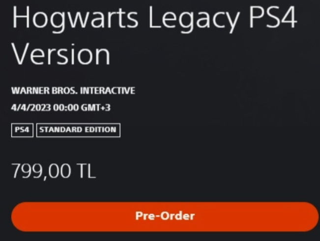 Если заходить на страницу Hogwarts Legacy с консоли PlayStation, то не получится увидеть ценник. Ранее он отображался в браузерной версии PS Store, игра Hogwarts Legacy на PS4 стоила 799 лир. Однако, недавно возможность предзаказа по какой-то причине отключили.