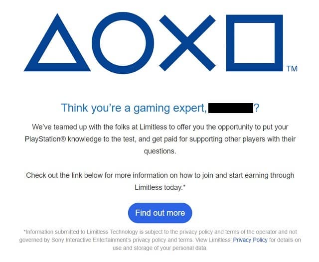 «Мы работаем с компанией Limitless, чтобы предложить вам возможность проверить свои знания PlayStation и получить деньги за поддержку других игроков в их вопросах».