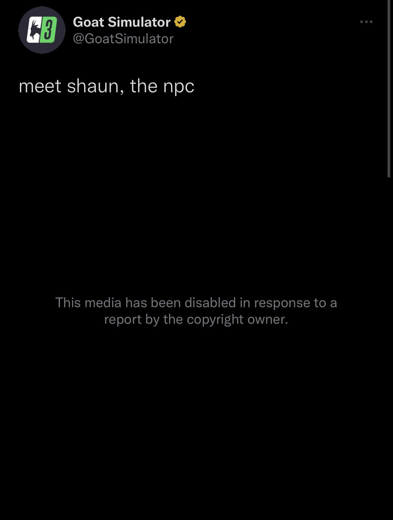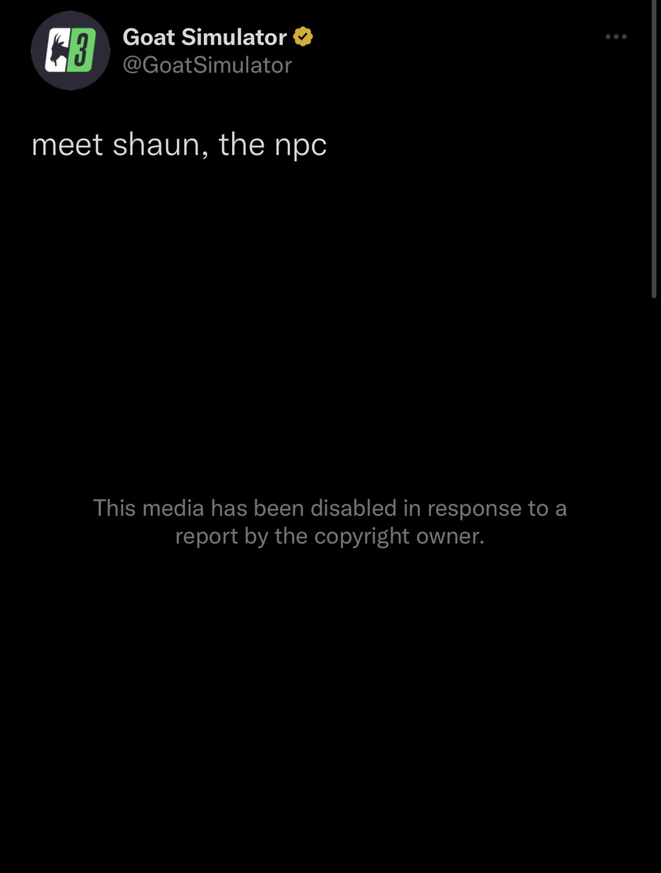 Юристы Take-Two отреагировали на провокационную рекламу. Сообщают о том, что пост с рекламой Goat Simulator 3 удалили из-за DMCA (нарушение авторских прав).