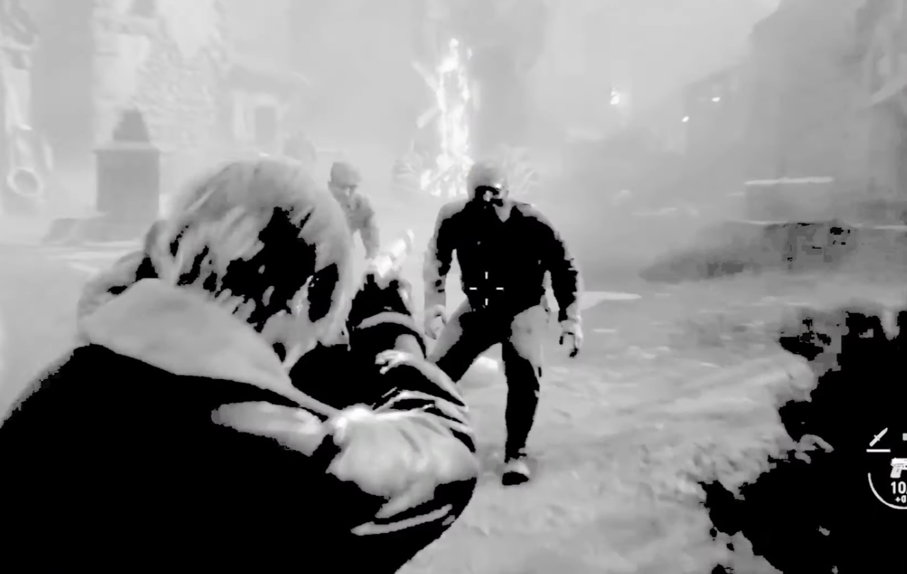 За героем следует свет. Так разработчики подсвечивают фигуру Леона, но явно перестарались — можно было бы убавить свет или добавить в сцену источники света, чтобы всё выглядело органично.