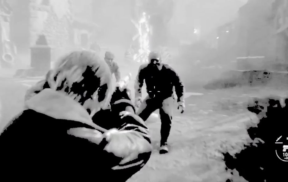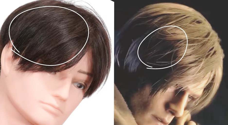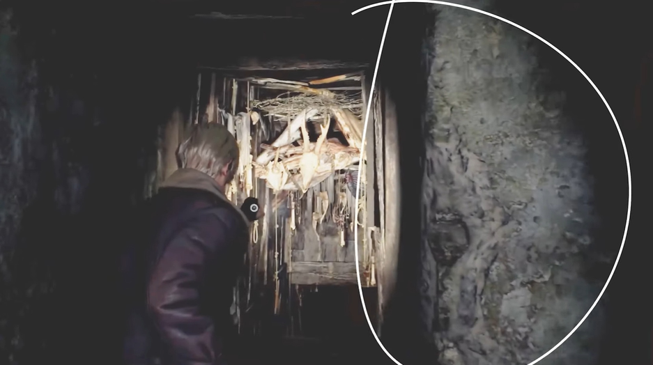 Внимание привлекают волосы главного героя Resident Evil Леона. Наблюдается проблемный шейдер. Блогер начал постепенно убирать тёмные области и оказалось, что голова «сияет» (волосы являются самой яркой частью кадра).