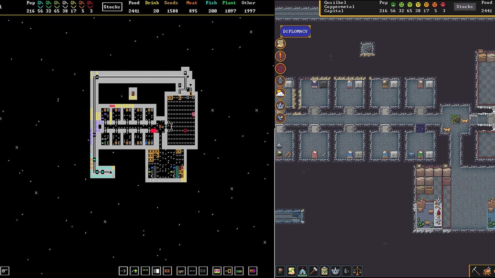 Этот режим заменяет пиксельную графику Steam-версии на ASCII-графику, которая была в оригинальной бесплатной версии Dwarf Fortress.
