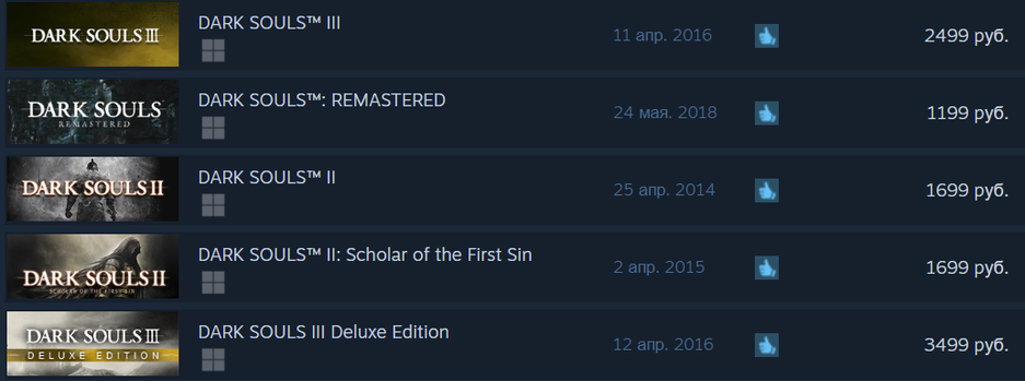 Другие игры FromSoftware: Dark Souls 2 и DS 2 Scholar of the First Sin; Dark Souls: Remastered и Dark Souls 3 остались без скидок.