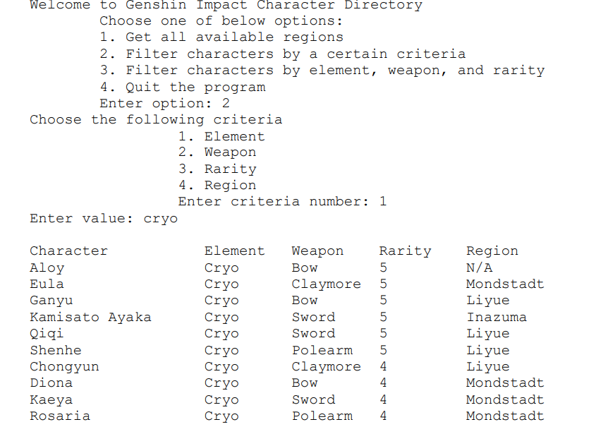 Учащимся предлагают поработать с данными о персонажах Genshin Impact. У персонажей есть различные атрибуты, такие как: имя, элемент, тип используемого оружия, редкость, регион происхождения.