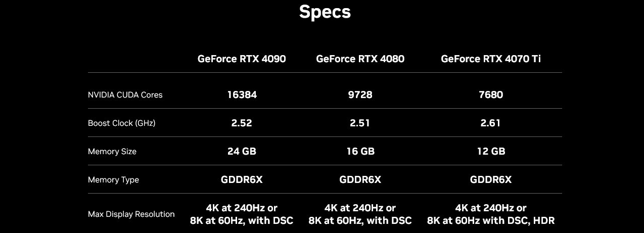 Характеристики NVIDIA GeForce RTX 4070 Ti следующие: