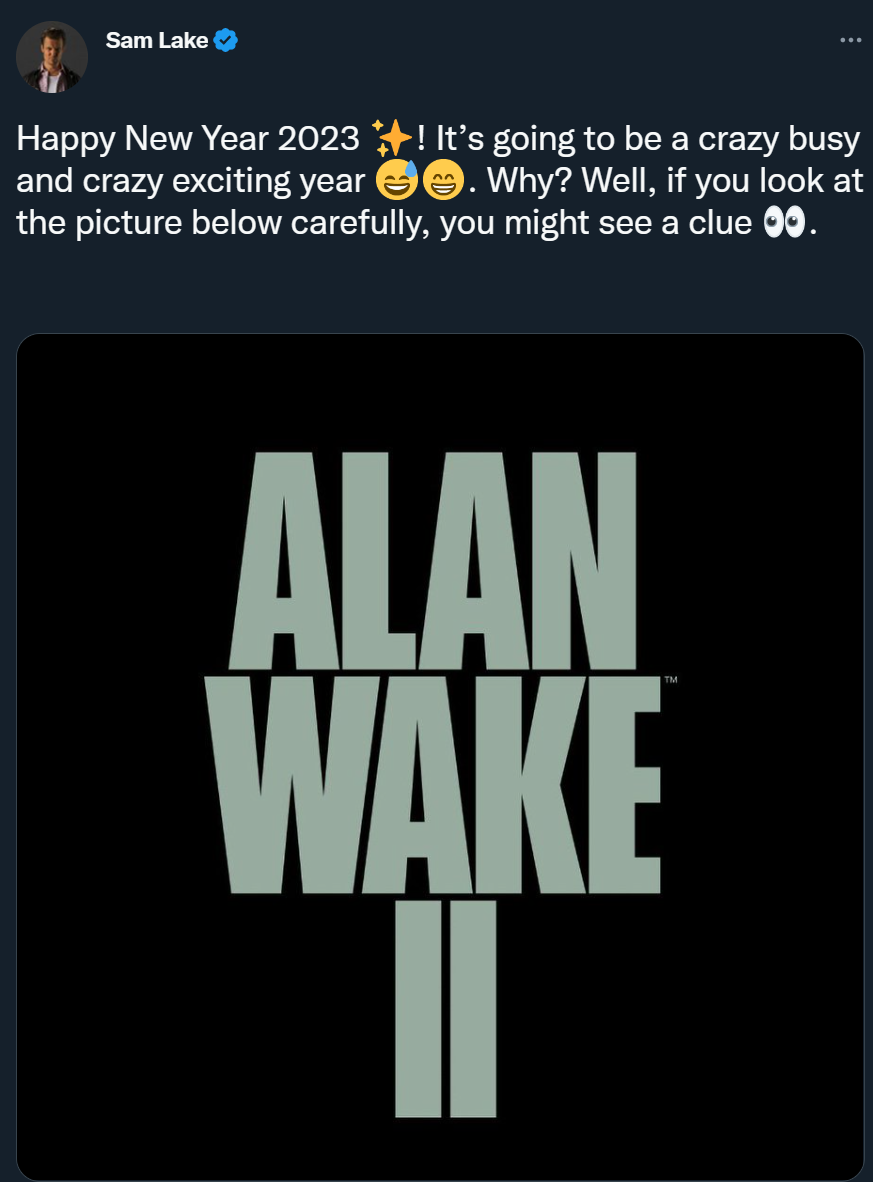 Этой подсказкой является недвусмысленный намёк на Alan Wake 2. Фанаты трактовали это как подтверждение предыдущего заявления Remedy Entertainment о намерении выпустить игру в 2023 году.