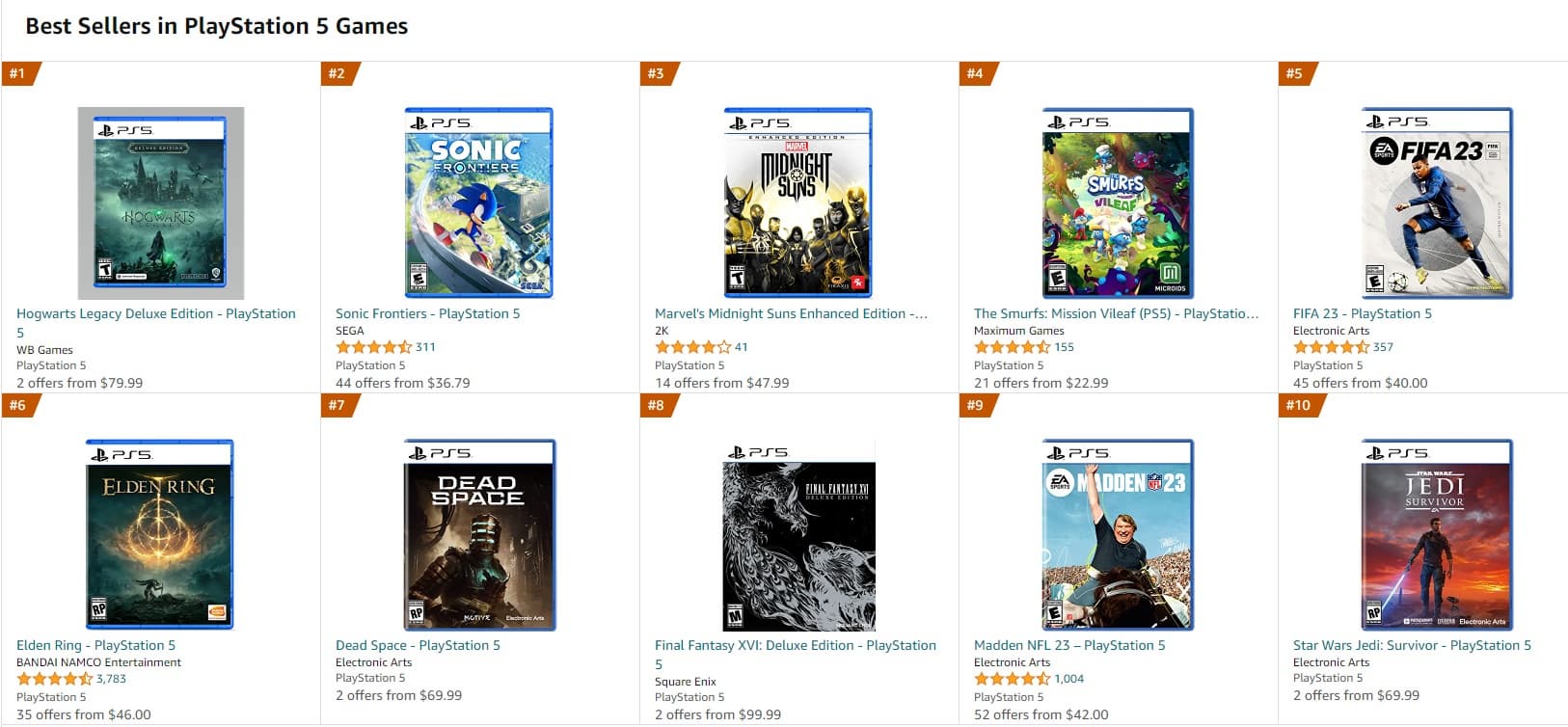 Согласно информации, полученной с портала Amazon, на данный момент Hogwarts Legacy занимает первое место по продажам среди игр для PS5. Несмотря на то, что до релиза остался месяц, Hogwarts Legacy уже сейчас опережает по продажам такие активно продающиеся игры, как Sonic Frontiers, Elden Ring и Marvel's Midnight Suns. На PS4 игра сейчас находится на 6 месте в чарте, а на Xbox Series X - на 4 месте. Очевидно, что эти данные немного искажены, но всё равно служат хорошим индикатором того, насколько высок интерес к игре фанатов вселенной Гарри Поттера.