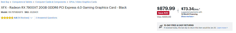 Radeon RX 7900XT 20GB можно найти за $880, в то время как GeForce RTX 4070Ti 12GB стоит $840.