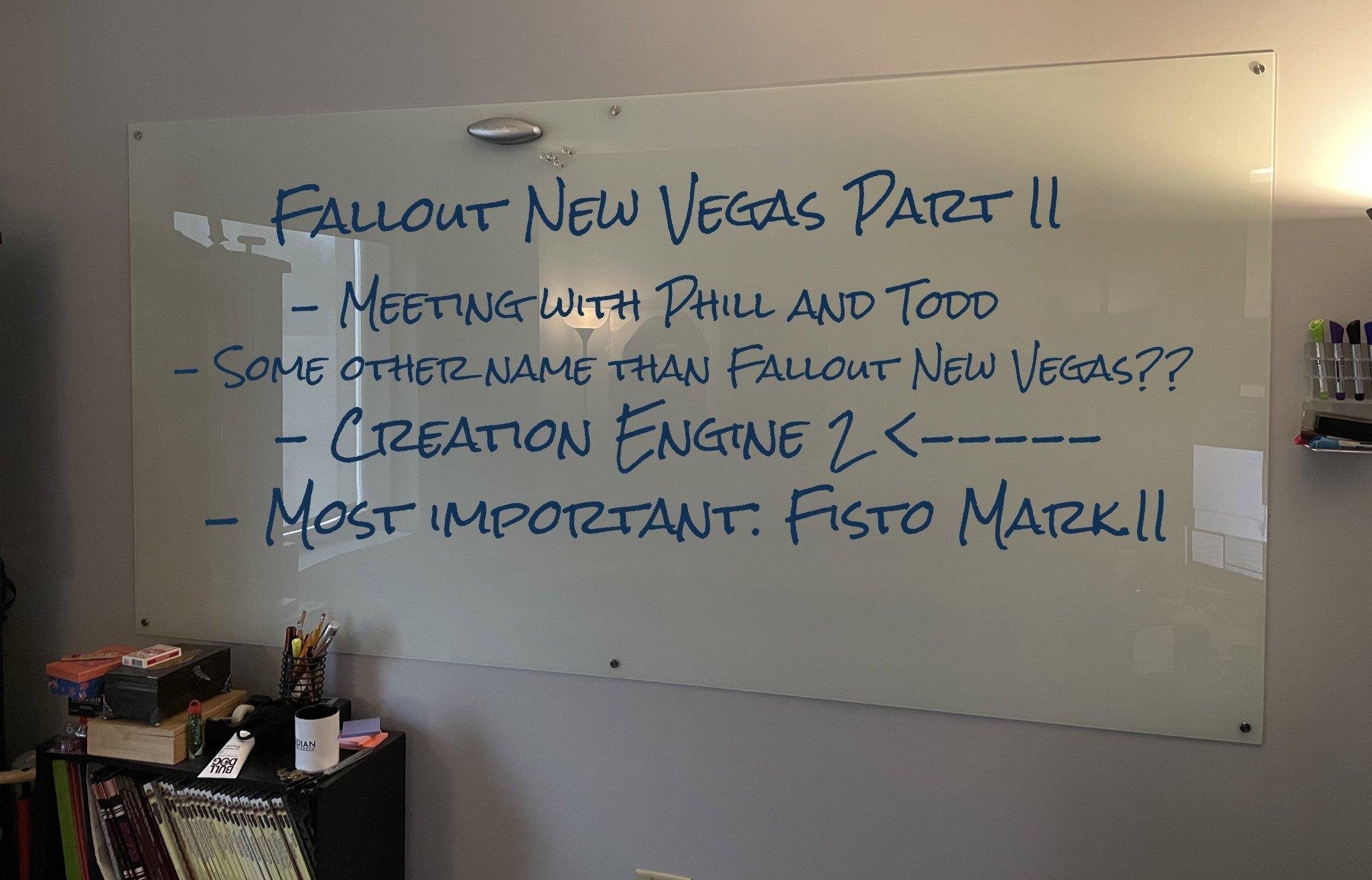 Сообщество Fallout New Vegas потребовало встретиться с Филом Спенсером и Тоддом Говардом для обсуждения сиквела, подумать над новым названием, использовать движок Creation Engine 2, а также не забыли запросить улучшенного Fisto (робот из Fallout New Vegas).