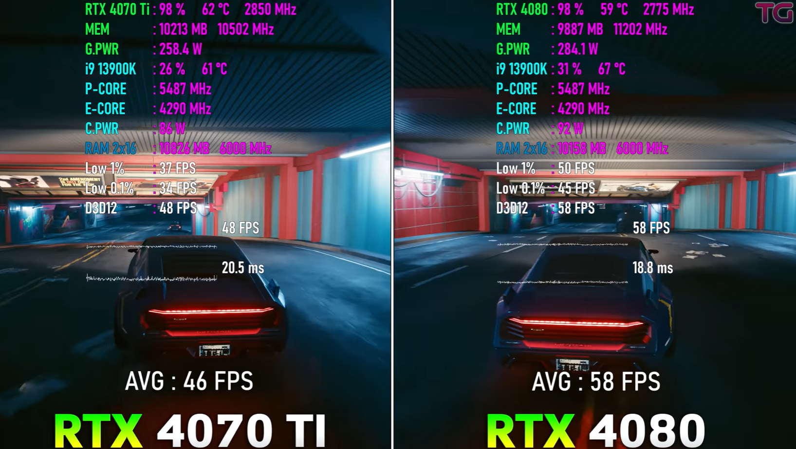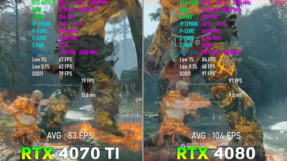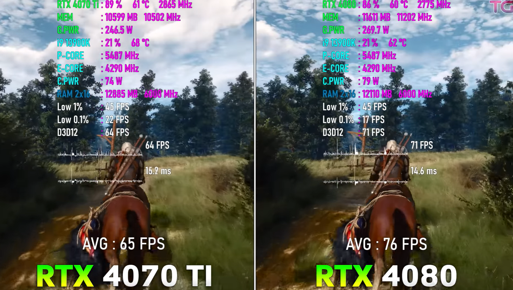 В среднем разрыв между RTX 4070 Ti и RTX 4080 в играх составил 20 FPS в пользу старшей видеокарты.