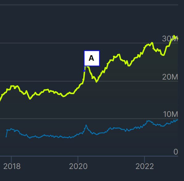 SteamDB зарегистрировал очередной рекорд сервиса Valve. Совсем недавно Steam мог похвастаться рекордом в 31 миллион единовременных пользователей.