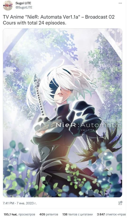 7 января вышел первый эпизод многосерийного аниме Nier: Automata Ver1.1a. Появилось сообщение из уважаемого в аниме-сообществе источника, где называется сколько эпизодов ждать зрителям.