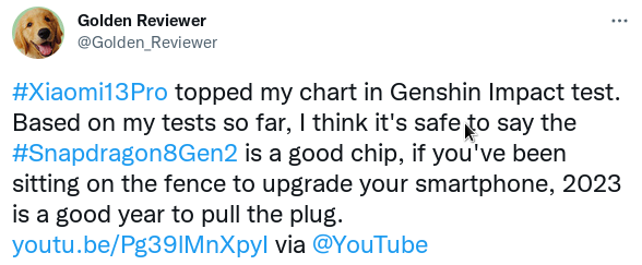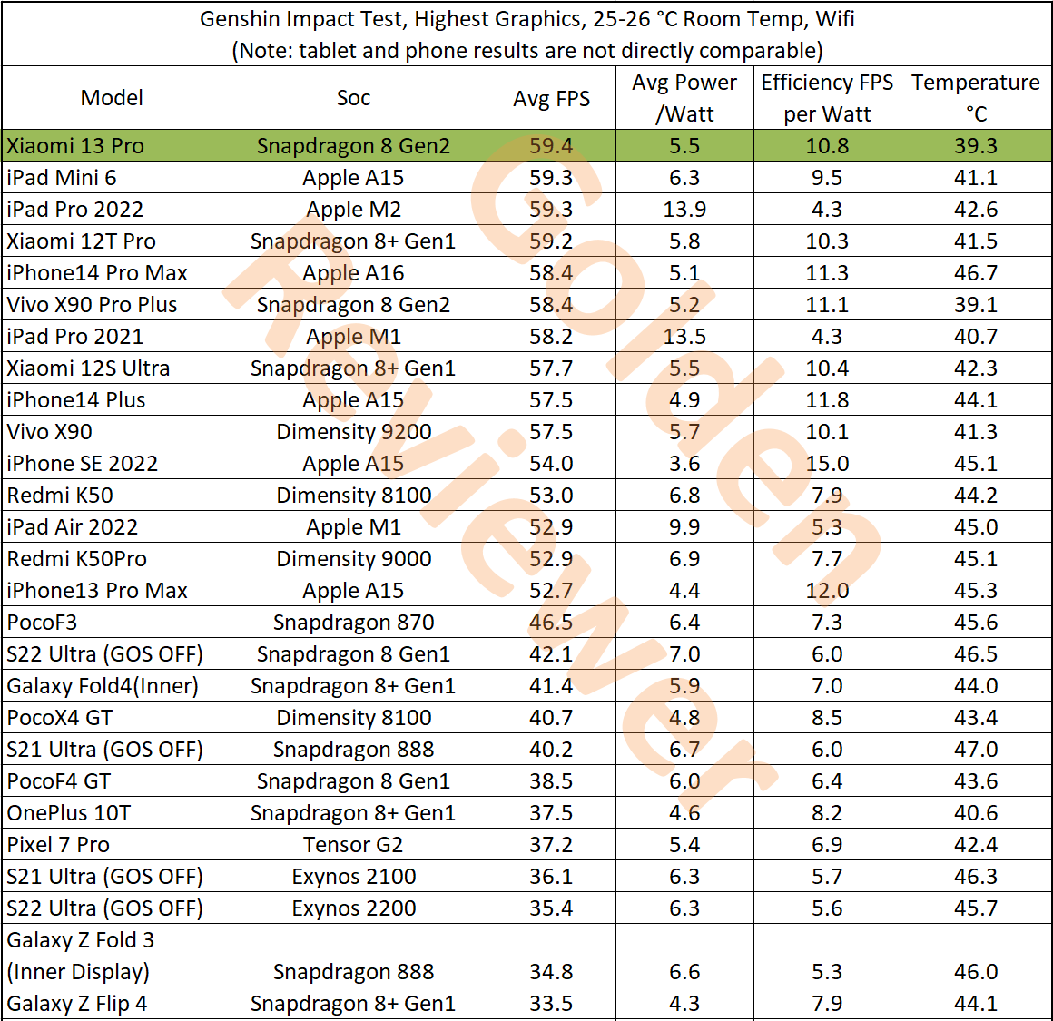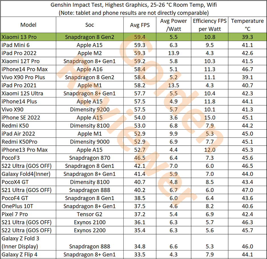 Пользователь Twitter под ником Golden Reviewer провел тесты недавно представленного смартфона Xiaomi 13 Pro на базе процессора Snapdragon 8 Gen 2. В Genshin Impact новый смартфон опередил всех конкурентов, в т. ч. продукцию компании Apple на чипах Apple A15 и Apple M2.