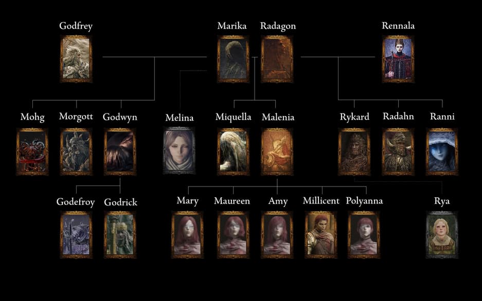Пользователь Reddit с ником octobersveryown616 нарисовал генеалогическое древо, которое будто сошло со страниц «Игры престолов» Мартина с демонстрацией родственных связей семей Старков или Ланнистеров. За исключением того, что это творение, создано для игры.
