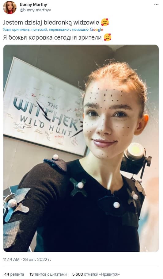 Модель и актриса, скрывающаяся под псевдонимом Bunny Marthy, опубликовала в октябре 2022 года фотографию, на которой она изображена в маркерах, используемых во время сеансов захвата движений, используемых для анимации персонажей в играх. На заднем плане можно увидеть табличку с автографами создателей The Witcher 3, что может говорить о том, что Bunny появится в игре CD Projekt. Сейчас твит удалён.