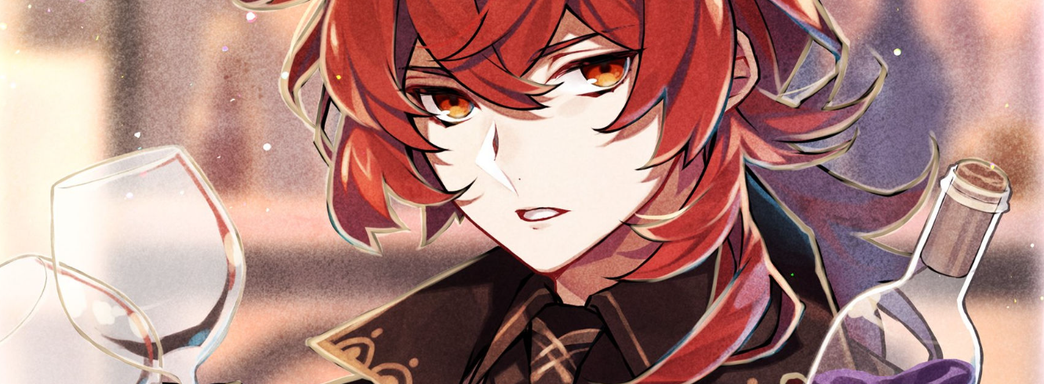 У лысой версии Дилюка большой лоб и становится заметно, что рот, нос и глазки расположились в самой нижней части черепа. Предполагается, что такая анатомическая особенность актуальна и для других персонажей Genshin Impact.