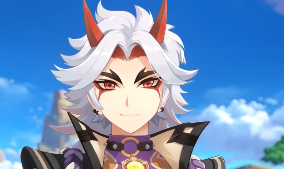 У Аратаки Итто тоже изящно прикрыли часть лба.