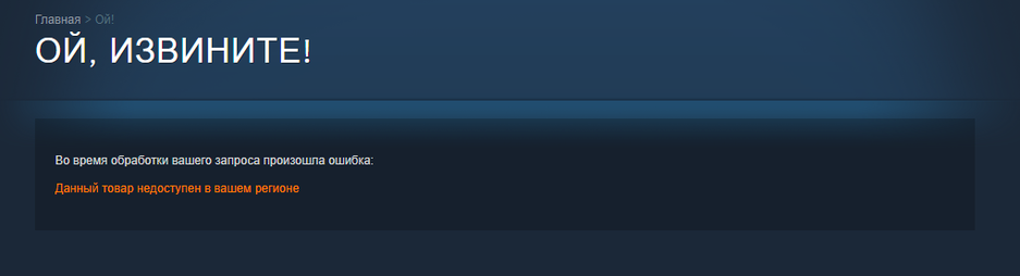 При попытке открыть The Callisto Protocol в российском Steam выдаёт ошибку: «ОЙ, ИЗВИНИТЕ! Во время обработки вашего запроса произошла ошибка: Данный товар недоступен в вашем регионе». Некоторые издатели просто отключают опцию покупки, а порой блокируют страницу в российском Steam, как поступила Krafton.