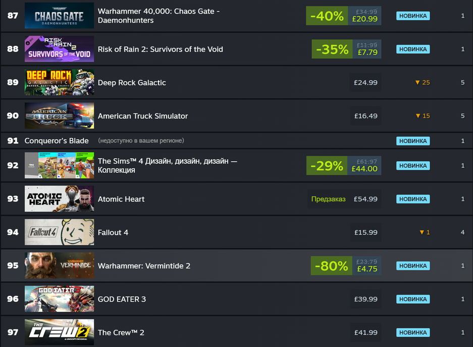 После публикации превью игра вновь всплыла в чартах Steam. Atomic Heart по-прежнему не видно в США, или Великобритании.