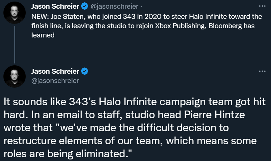 Также под сокращение попадает 343 Interactive (343 Industries), отметившаяся Halo Infinite (похоже, ожидаются масштабные сокращения тех, кто отвечал за кампанию).