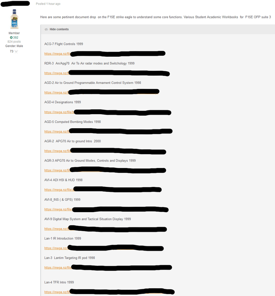 На этот раз в фокусе внимания оказался F-15E Strike Eagle, двухместный истребитель-бомбардировщик. Документы раскрывают 13 систем, используемых в F-15E.
